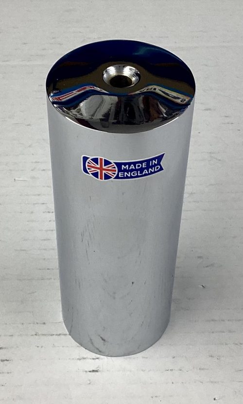 The original factory caps often came in two pieces. These were made from different materials, which could cause separation and corrosion over time. We reproduced our caps entirely in steel for enhanced durability and a robust feel. We professionally chrome each cap. This gives them a long-lasting, brilliant finish that perfectly matches the factory appearance.
